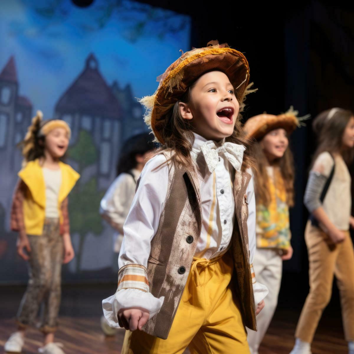 На занятиях мы вместе с детьми 6-10 лет придумываем интересный спектакль, в котором они сами играют и поют. Это отличный способ развить и проявить свои артистические способности и обрести уверенность выступлений перед публикой.